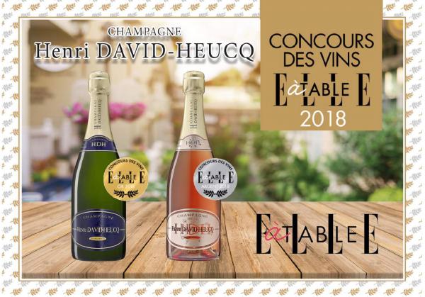 Deux médailles d'or pour la cuvée Brut et la cuvée Fût de Chêne au concours ELLE A TABLE de Paris.